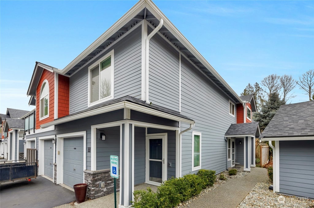 Come home to the serene setting of the popular Nature’s Walk community. Spacious 1478 SF top-floor corner home with an open concept main living area design. Grand kitchen w/quartz counters, double sink, pantry closet, abundant cabinetry & seating bar. Naturally bright living room w/display shelves, TV niche, cozy gas FP & slider out to the big deck. Great dining area. Primary Suite w/vaulted ceiling, 2 closets (one a walk-in) & bath w/dual vanity. 2nd Bedroom, 3rd Bedroom is an open wall Den/office easy to convert back, Laundry room, & a Full bath. Main level entry w/attached 2 car garage + 2 pkg. Built-in stair lift. Major community upgrades (2021) include new siding, paint, windows, roof, decks, gutters, landscaping & more. No rental cap
