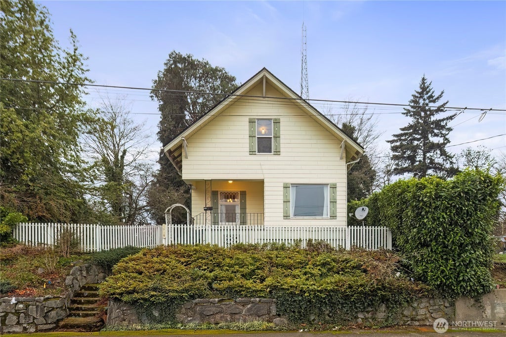 Step back in time with this charming Craftsman-style home conveniently located in downtown Bremerton. This home offers easy access to local shops, dining, and parks as well as close proximity to the ferry terminal for a quick commute to Seattle. Situated on a quiet dead-end street, but just a short distance to Evergreen Park and Olympic College. You will be welcomed from the inviting front porch through a new front door to the main floor which offers a spacious living room with a cozy fireplace and hardwood floors. The main floor also includes a formal dining room, kitchen and bathroom. Upstairs, you can take in the views of Port Narrows from 2 of the 3 bedrooms. The peaceful surroundings make this an ideal place to call home.