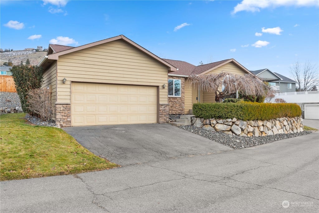 Rambler with vaulted ceiling. Excellent north end location near the Apple Capital Loop Trail. Situated to take in lovely views of the Foothills and Enchantments. Spacious living room with propane fireplace. Primary suite features two closets, full bathroom and ceiling fan. Forced air heat & AC ( newer AC unit) new windows. All appliances in kitchen, and washer dryer are included. Easy care yard with irrigation water & automatic sprinklers, outdoor shed. Back patio faces East for wonderful afternoon and evening shade in the summer. Hot tub pad on upper SE corner of the property, panel box has circuit for future hot tub.