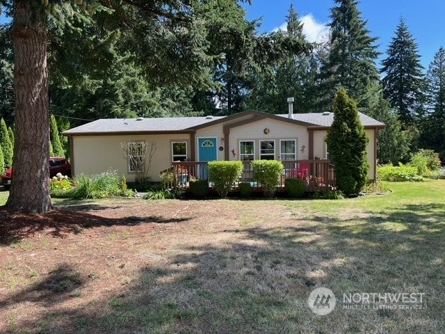 Flat sunny corner lot with well maintained 1995 home has new paint, flooring, roof in 2024, stove. Five piece bath with double sinks in the primary and full shared bath. Eat in kitchen has room for a breakfast table and room for stools at the counter. Formal dining room and living rooms off the kitchen. Newer pellet stove in the living room will warm you on chilly nights. Raised flower beds and a raspberry patch in the yard along with two sheds and a dog run. Property is lined by a few shade evergreens. Big west side deck to entertain and welcome your company.