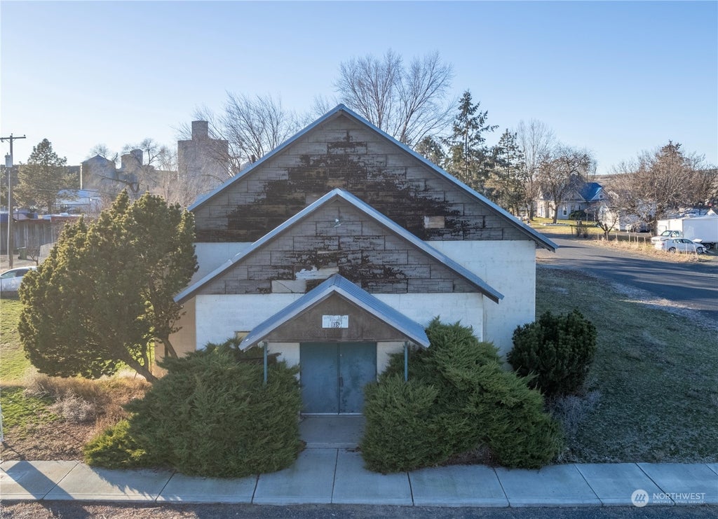 Large and spacious Grange Hall building with so much potential! This building has 2 bathrooms (men's has a urinal and a toilet. Women's has 2 toilets), there is a stage, a large basement with a kitchen and large dining/living room with extra rooms. This is zoned residential, so you could turn it into a unique and large home OR reopen Grange hall/make it into your dream building as the city is very easy to work with! With a metal roof, poured cement basement and cement block walls this building will live on. SOLD AS-IS.