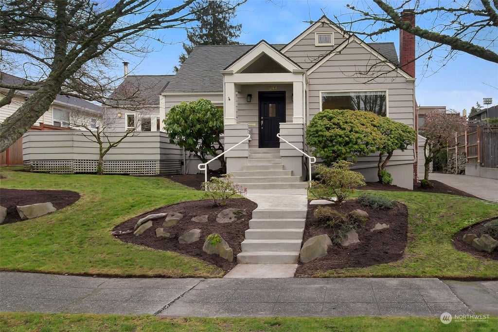 This Magnolia Cape-Cod home sits just one block off the coveted Magnolia Bluff. 3 bedrooms, 2 full baths, multiple living spaces w/ an opportunity to expand a potential ADU on the lower level. Freshly painted interior, refinished oak hardwoods, new lighting, newer kitchen cabinets & French doors leading to the deck from both the living & dining rooms, offering the perfect setting for entertaining. The large driveway leads to a spacious 2-car garage w/ car charger & a sprawling fenced backyard, wonderful space for gardening & creating. Conveniently located just minutes to Met Market, many restaurants, coffee shops, walking/bike paths, as well as DT Seattle. Great options for schools-Lawton Elementary, K-8 Catharine Blaine & 10/10 Ballard HS.