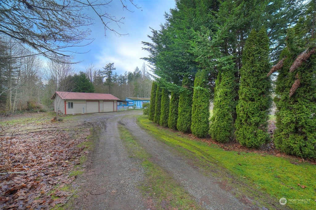 Discover an incredible opportunity to own developed acreage in Kingston! This charming 5.05-acre lot comes equipped with power, a 2-bedroom septic system, a 31' hand-dug well, and propane. The property features an 864 sq. ft. shop/garage built in 2005, a covered carport, a fenced dog run, fruit trees, a small orchard, and a separate 50-amp power/water hookup for RVs. Included is a 904 sq. ft. 1966 manufactured home with 2 bedrooms and 1 full bath. The back-right portion of the property (over 2 acres with blackberries and trees) may offer an ideal build site for a stick-built home. Imagine the potential for water views with a two-story home! Don't miss out on this lovely and versatile parcel—schedule your showing today!