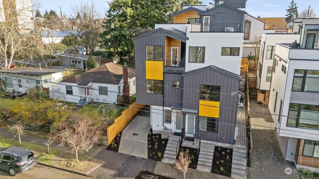 Enjoy living in the heart of Ballard with an INTEREST RATE BUY-DOWN TO 5.99%! Savor breathtaking views from your spacious rooftop deck, perfect for entertaining or relaxing. The expansive owner’s suite creates a serene and welcoming retreat that includes a spa inspired en suite bathroom with dual vanities, rainfall shower, and heated flooring. The open-concept floor plan is bathed in natural light with a tastefully designed chef’s kitchen boasting quartz countertops, high-end appliances, and custom cabinets. A world of possibilities awaits in the oversized second bedroom with its own separate entrance, en suite bathroom, and enormous walk-in closet that includes additional washer/dryer hookups. EV-ready garage parking adds convenience.