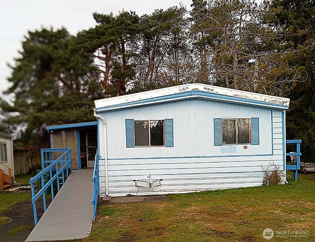 Double wide mobile home just off of Fairhaven Parkway. South End Mobile Estates, 55+ Park. New flooring, new painted cabinets and new countertops. Large kitchen with room for a dining table. Separate entrance off the kitchen. Main bedroom is fairly large. Walk in shower. 2 year old metal roof. Low maintenance aluminum siding. Small deck and enclosed porch with a wheel chair ramp and a storage shed. One of lowest rental rates in Bellingham. Motivated seller. Great neighborhood!