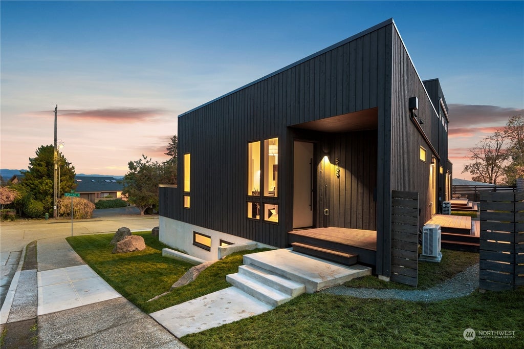 Set among 16 stones & 3 trees, a unique urban residence perched at the precipice of Seward Park emerges to create a unique opportunity unseen in Seward Park. Ultra-modern styled and clad in rich dark cedar, showcasing striking architecture, custom lighting, and exquisite details. Spacious primary suite with dual vanity bathroom & walk-in shower. Additional lower level bedroom + flex space or non-conforming 3rd bed with walk-out slider. Modern kitchen with honed counters & stainless appliance make this the epitome of efficient in-city living. Southerly exposure and sweeping views of Mt Rainier & Lake WA from the view deck for outdoor enjoyment. 1-car attached garage. Every inch of this property has been thoughtfully designed & curated.