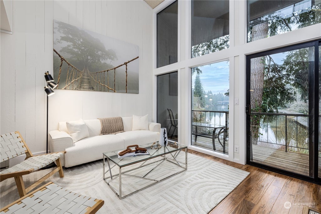 This lakefront gem is in the heart of the resort-like Sixty-01 Village! Home has been refreshed and updated with new paint throughout. Living room with vaulted ceilings and boasts dramatic wall to ceiling windows! Relax on the deck and be mesmerized by the lake, water fountain and many birds. You'll love cooking in this kitchen with beautiful wood cabinets, brand new SS appliances, sink, fixture and hardware. Full bath updated with new flooring, quartz top vanity and tile shower. Upstairs boasts new carpeting. Carport parking + lockable storage. 60-01 has gated entry, 4 pools, 3 lakes, 83 acres of trails/parks, clubhouse, gym, pea patch, more! Near Google, Microsoft, Highways 405/520! Lake Washington School District. Pre-inspection report.