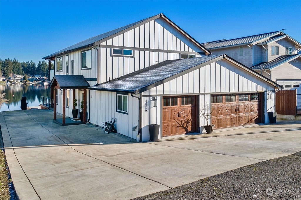 Escape to waterfront luxury with this custom-built gem! Masterpiece boasting panoramic Lake Meridian views. Open-concept design features a chef's kitchen with SS appliances, cozy living space, gas fireplace, immense natural light, main-floor rain shower. The grand primary suite offers vaulted ceilings, private balcony & expansive windows framing lake views w remote-controlled blackout blinds. Enjoy Trex deck, rare private beach w firepit. New 500 sqft eco-friendly dock w concrete sleeve pilings w 10,000lb boat lift. RV hookups, Cat5 wiring,3-car garage, nearby park/boat launch,offering the ultimate waterfront lifestyle! No HOA,RV hook & sump out, outdoor hot/cold water spickets. Potential 4th bedroom design in photos-calls us for more info!