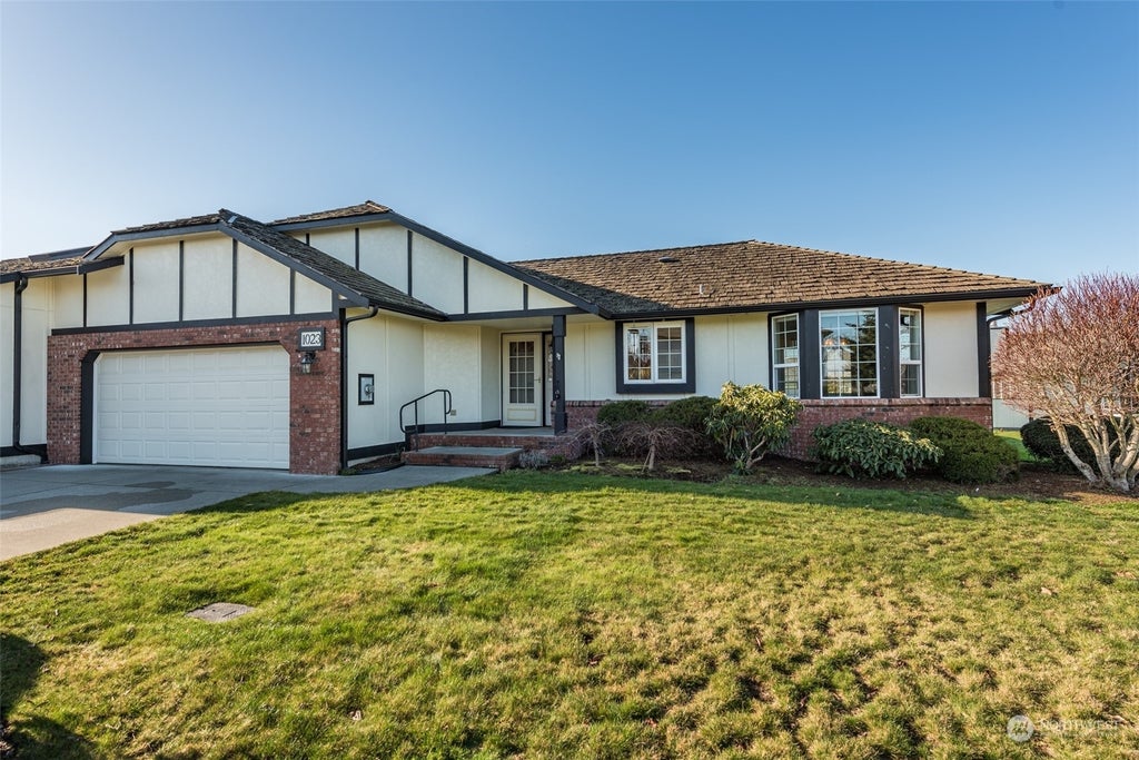 Sherwood Village desirable end unit condo surrounded by mountains and located close to medical facilities.2 bedroom, 2 bath 1,571 square ft home with appliances,3 ductless heat pumps, outdoor patio, decorator paint and blinds. Updated kitchen has under cabinet lighting & dining space. Open living area with propane fireplace, window seat/storage and outside patio access. Large den with laminate flooring. Nice guest room with nook for desk. Oversized primary suite with window seat, patio door and walk in tub. Inside laundry center: full size washer/dryer, utility sink, storage. 2 car attached garage with built in closets, extra cabinets. HOA fee of $1,759 per quarter covers water, sewer, trash, landscaping, exterior maintenance & insurance.