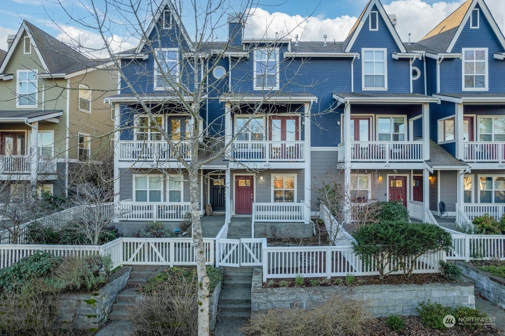 Beautiful craftsman style townhome on a charming street overlooking the park. Lovely covered front porch, landscaped and fenced front yard with fruit trees. Thoughtfully designed with loads of natural light, soaring ceilings and easy floor plan. Enter on the lower level with 1 bedroom and access to attached garage. Main floor features an open kitchen/dining with ample storage and counter space. Cozy sunken living room with gas fireplace opens to another spacious covered deck. 2 beds and 2 full baths upstairs, including primary suite with vaulted ceilings and views of the park. Professionally landscaped community. Fabulous location! Walk to the Lightrail, downtown Columbia City, nearby Cheasty trails and much more.