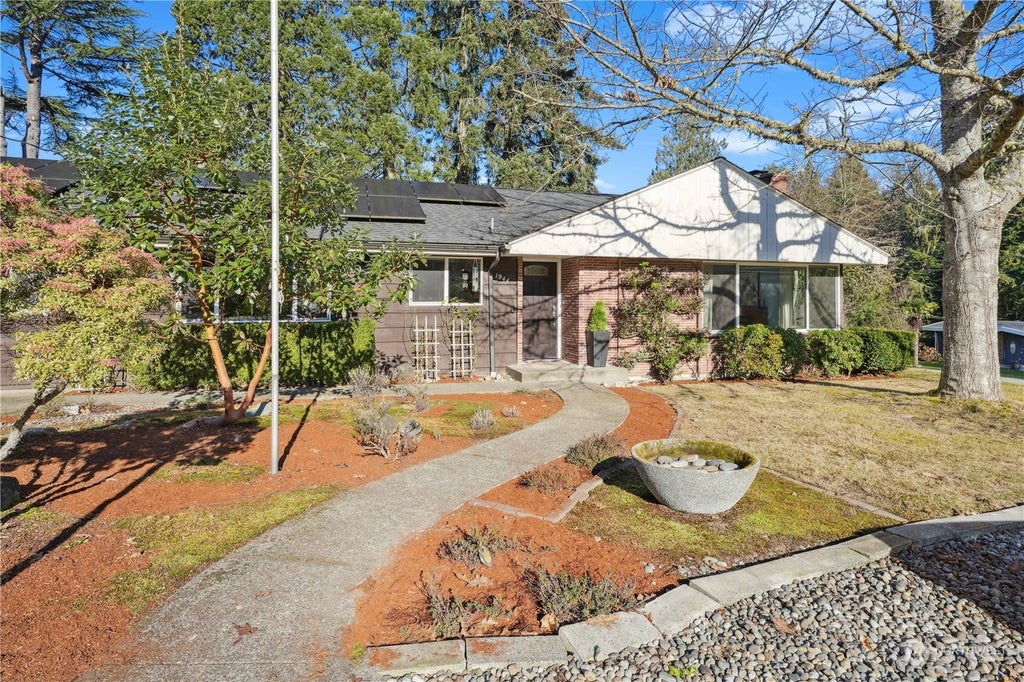 Welcome to your dream home! This beautiful 3-bedroom, 2-bathroom rambler has so much mid-century modern charm! Nestled on a sprawling corner lot, this home offers incredible curb appeal with its sleek architectural lines, fresh exterior paint, and lush mature landscaping that includes fruit trees. Step inside to discover an inviting and light-filled living space featuring clean lines and timeless design elements. The spacious layout is ideal for entertaining, with seamless transitions between the living, dining, and kitchen areas. Updates include newer roof, gutters, solar panels, windows and heat pump. A huge deck that’s perfect for BBQ'S and the private lot has ample space for gardening. This gem is close to schools, parks, & shopping.