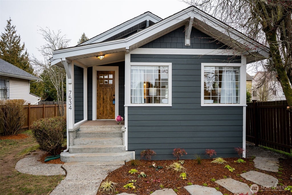 This fantastic home is full of updates! HW floors throughout the main level + open floor plan great for entertaining. Cozy living room with skylight + formal dining. Full kitchen remodel this year - Quartz counters, brand new appliances, full-height backsplash, under-cabinet lighting, eating nook, breakfast bar, French Doors to deck & lots of storage. Natural light floods the primary on the main level. Main bath updated 2024. Multi-purpose family room + 2 bedrooms & second full bath on the lower level. Separate laundry room with storage - washer & dryer included. Fully fenced backyard with deck & patio + off-street parking in back. Fully finished studio/office built in 2022. Shed in backyard with built-in work bench & shelving. EZ Commute