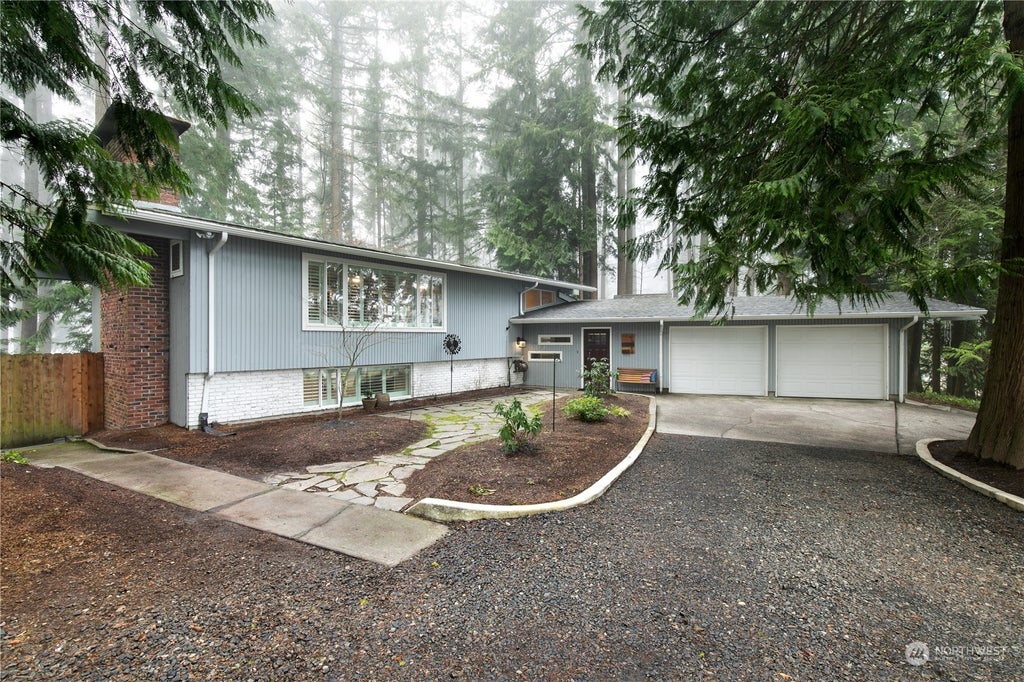 Nestled on a serene wooded lot, this stunning mid-century style tri-level home offers spacious living with forest views in a quiet, dead-end neighborhood. Inside, enjoy laminate wood flooring, fresh interior paint, and two cozy wood-burning fireplace inserts. The main floor features a luxurious primary suite with a private patio, walk-in closet, and a spa-like 4-piece en-suite with heated tile floors. The lower level includes three bedrooms, a full bath, and a second living area. Outside, relax or entertain on the large deck, sport court, or by the fire pit. Don’t miss the finished outbuilding with electrical, heating, and plumbing—perfect for an office, guest space, or clubhouse—plus a separate storage shed for all your tools and gear.