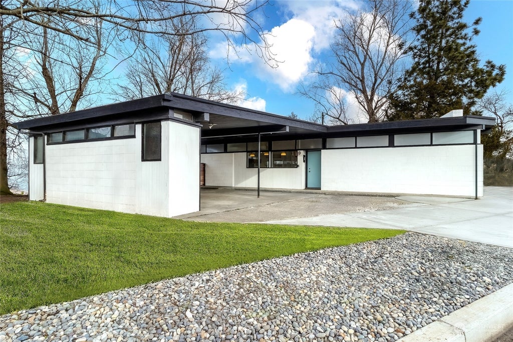 Light & bright, with all the charm of a MidCentury Modern! Central location provides easy access to Highway 12, close to schools and shopping, and just minutes to downtown. Primary bedroom features large walk-in closet, second bedroom has original built-in wardrobes, and flexible sunroom could be a third bedroom or plant paradise! Great Room makes for easy entertaining, open to updated kitchen with new appliances, custom cabinetry, and butcher block counters. Vaulted wood ceilings, glass panel accents, and asymmetrical fireplace feature are stunning to see! Large lot has lots of privacy, patio and fire pit perfect for alfresco gatherings. RV Parking on site.