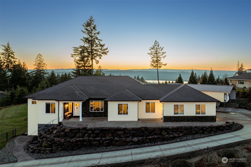 This stunning home, built in 2017, sits on two usable acres & offers breathtaking river, mountain & territorial views, which can be enjoyed from the gorgeous covered deck. The vaulted great room provides a spacious, open atmosphere & connects to the gourmet kitchen, with Jenn-Air appliances, quartz counters, gas range, built-in 2nd oven & huge walk-in pantry. The luxurious primary suite includes dual walk-in closets, a walk-in shower & a slider that opens directly to the covered deck. Additional highlights include 640 SqFt of unfinished basement that could be converted into an ADU, a 2nd detached garage, covered RV parking with hookups, and a fenced garden with raised beds. Conveniently located just 35 minutes from PDX & 5 minutes from I-5.