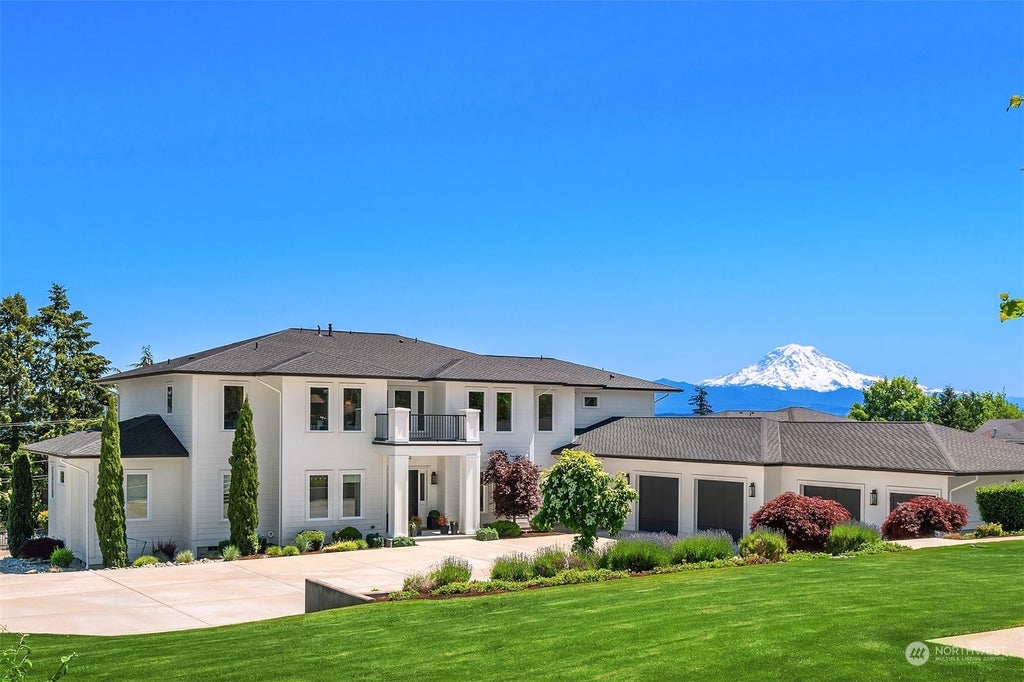 Mt. Rainier is an incredible backdrop for a movie star quality home that takes center stage. Street of Dreams quality & magazine worthy w/ style, functionality, & design of a true high end custom home. All surfaces & features are true high level- 10 & 11' ceilings; 8 ft doors; coffered ceilings; marble. Primary suite on MAIN floor w/ fireplace; double closets w/ washer/dryer; soaking tub; living & dining rooms; Main level guest suite w/ full bath. Island kitchen w/ Carrara marble; Thermador appliances; beverage drawers; prep kitchen and grilling porch w/ DCS Grill. Up-more bedroom suites; utility room; library and TV lounge PLUS Theater room w/ tiered seating. Manicured & Gated Grounds. Centrally Located in Puyallup Schools. Unique Luxury.