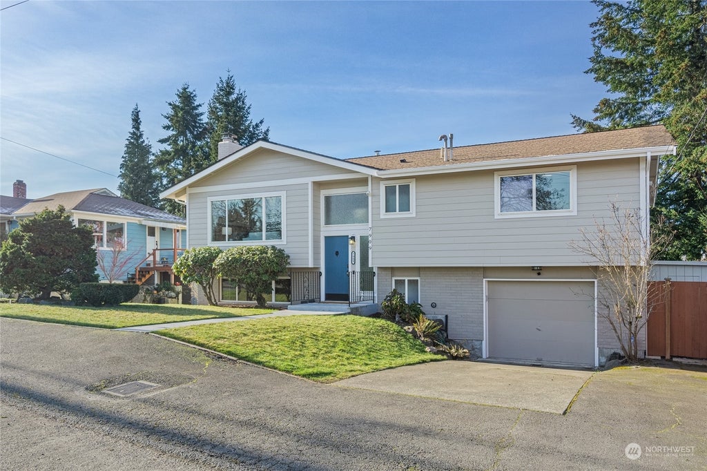 Tucked at the end of a peaceful court, this home offers breathtaking views of both the Cascades & Olympics. Surrounded by lush gardens, a tranquil pond, and mature trees, the property feels like a private oasis. Multiple decks and a covered patio are perfect for outdoor entertaining or relaxing year-round. The park-like yard includes raised garden beds, a grassy area for pets, and an adorable storage shed, ideal for tools, a playhouse, or a mancave. Inside, light-filled rooms and a spacious living area with a brick fireplace create a welcoming atmosphere. A bonus studio downstairs with a full kitchen and living area offers rental or guest suite potential. Convenient location near DT Seattle, SLU, Westwood Village, Airport & Alaska Junction