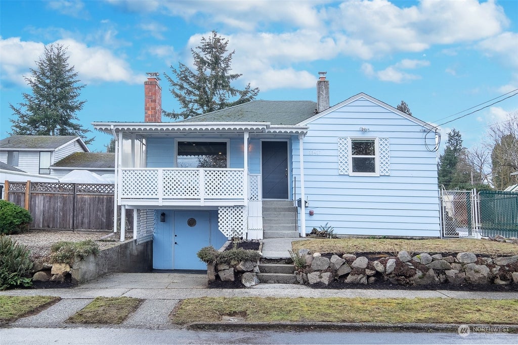Seamless indoor-outdoor living! A covered front porch invites you into this lovely, open-concept home with 2 living rooms, dining area & large, covered deck. Vintage kitchen has classic charm & modern updates, a fully remodeled primary suite boasts custom built-ins, dressing room & en suite w/lux tile, large shower & heated floors. A tucked-away office is perfect for WFH. High-ceilinged basement offers potential for a 2nd primary suite, bathroom or ADU, plus a newly finished 3rd living room w/fireplace & separate entrance. Updated plumbing, electrical, ductless mini-splits. Two car garage is currently a large shop ideal for a DADU or makers space. Fully fenced yard! Close to Burien’s vibrant shops, groceries, farmers market & restaurants.