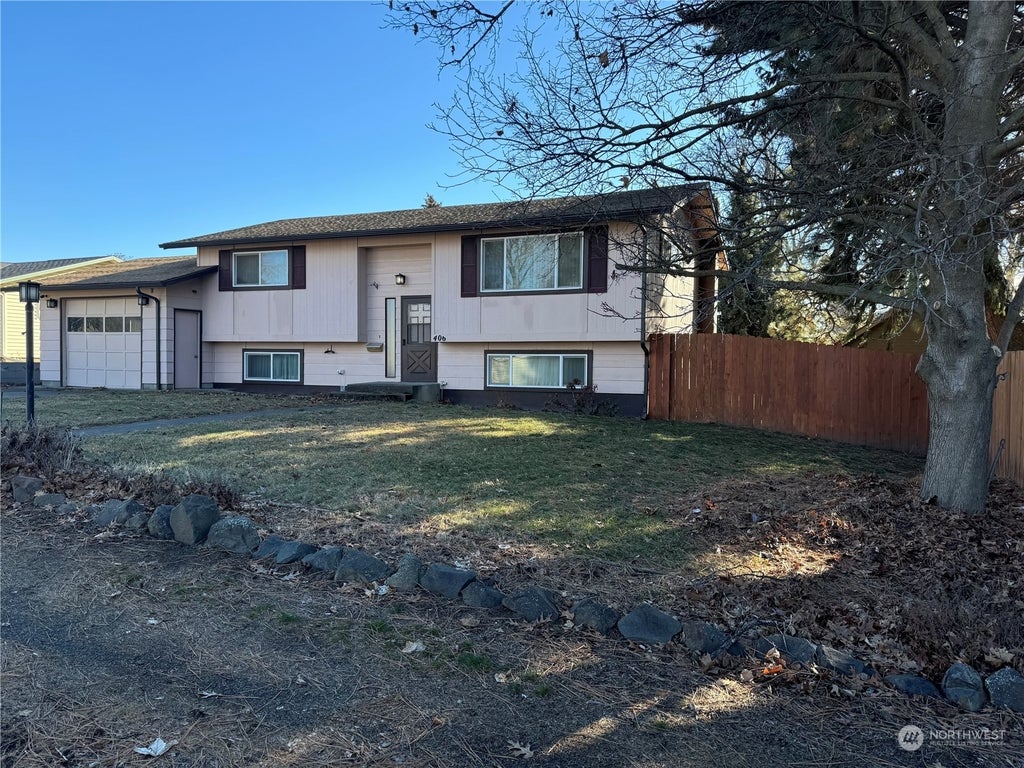 Tucked back on a quiet street, sits this well maintained 3 bed/ 2 bath home near schools, hospital, and park. Open concept floor plan with large living room/dining room area with the kitchen overlooking both. Main floor offers 1 bedroom and updated shower/bath while lower level offers 2 bedrooms, newly renovated bathroom, and large family room/den area with wood stove. New floor in utility room as well. Spacious attached garage and large covered parking in back with alley access. Fenced, landscaped yard in back with underground sprinklers both back and front yard. Ample parking for RV and or recreational vehicles. Covered patio area in backyard that would be great for relaxing and or entertaining! Clean, charming home that is a must see!