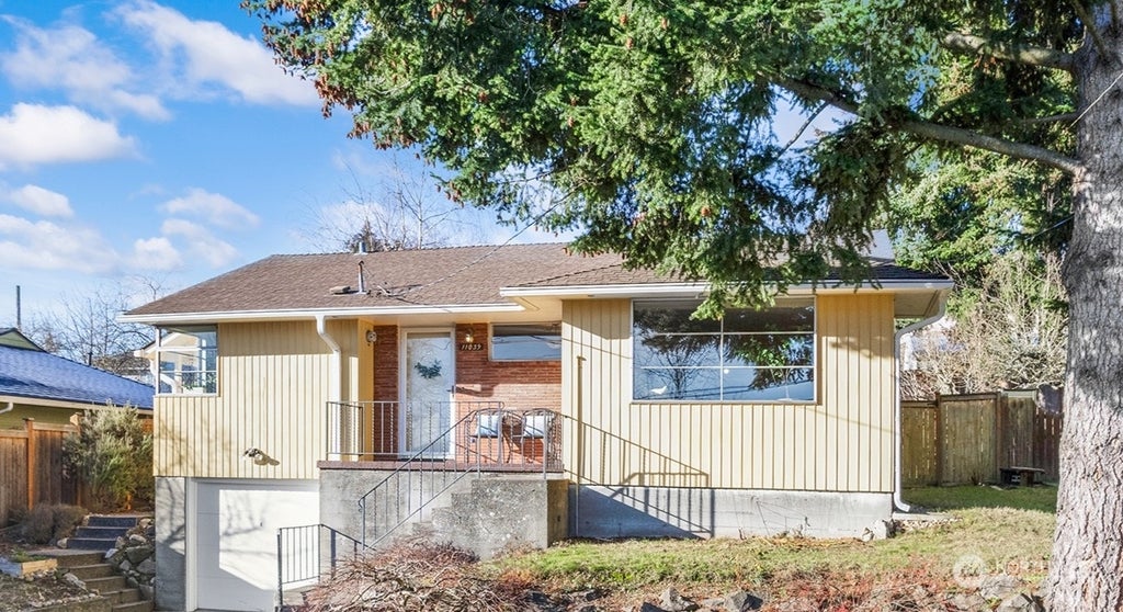 This classic mid-century home (1952) sits high above the street for great privacy, great light & lovely Seola Greenbelt views. The handsome mantled fireplace creates a focal point for both the living room & dining room. Warm, newly refinished hardwood floors are featured throughout. The kitchen features a corner table nook & plenty of cupboard & counter space to please the chef. The living room features a wall of windows for great morning light. Full bath features a tub/shower combination. The west facing, fully fenced, backyard features a large lawn, several garden beds & a sunny patio area. There is garage parking for 1 car & off-street parking pad for two more.