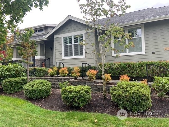 Welcome to Trilogy, a 55+ community, with natural beauty and award-winning golf course. This charming 3 bed/2 bath bright and sunny Orchard plan home offers upgraded 42" cherry kitchen cabinets, pot drawers, slide out shelves, quartz counters, tile backsplash, newer double oven gas stove, A/C and 2024 furnace. Plantation shutters and California closets throughout! Living on a quiet cul-de-sac with your home connected by one shared garage wall ensuring privacy. Upgrades include media cabinet, extended mantle and 3 extra windows for continuous light! Enjoy resort-style amenities, including pool, club house, fitness center, restaurants, QFC, shops and trails all within walking distance. Virtually staged, and move in ready! Welcome home!