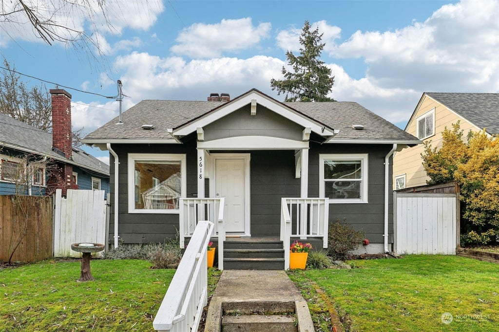 Beautiful classic craftsman 3 bedroom (1142 sq ft) home with an inviting covered front porch. Warm vinyl plank floors great you and carry throughout main floor. Spacious and bright refreshed kitchen with, new counters and backsplash, a farm sink & breakfast nook. Cozy living room features mini split heat pump and wood burning fireplace. Spa-like custom tile shower with glass block in main floor bathroom. Upper 260sf can be bonus room, office or 3rd bedroom. Double pane windows. Fully fenced yard ideal for entertaining. Garage has alley access and double gate for access to yard and garage. Ample street parking and sidewalks.