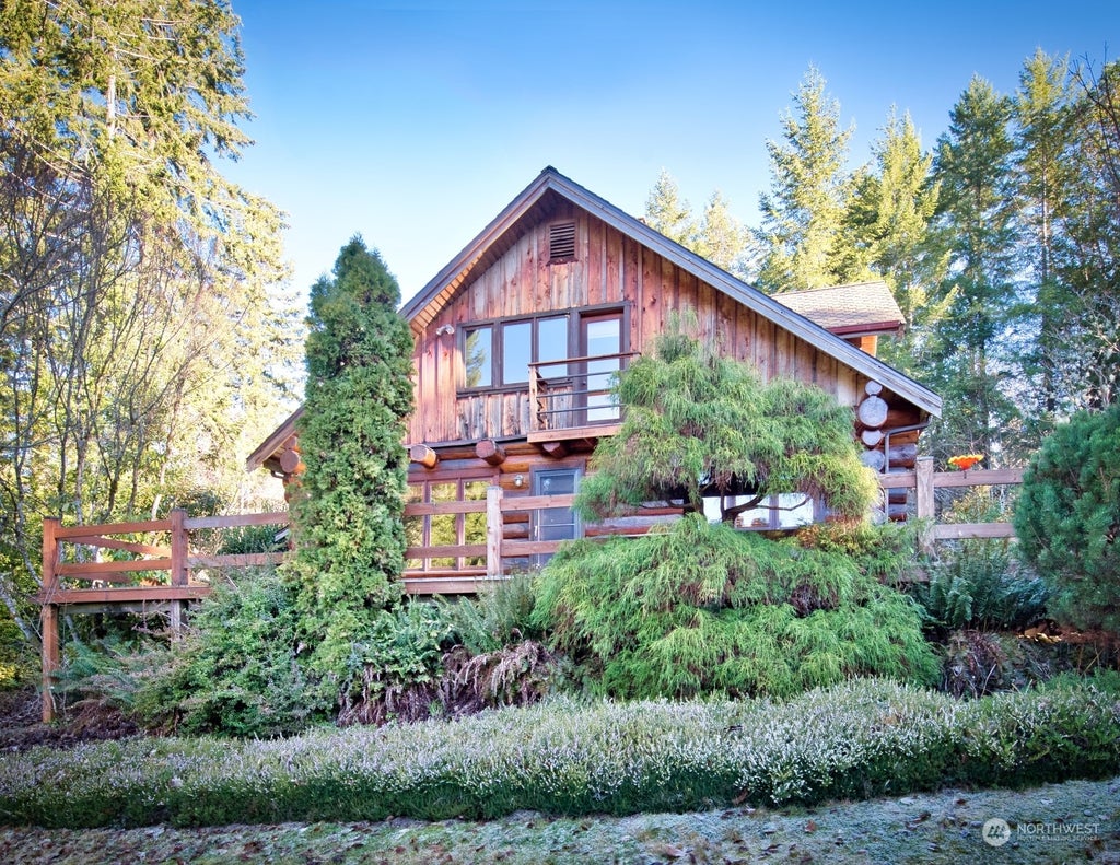 This magical log home is nestled in the coveted gated community of Bridletree, sitting on 2.71 secluded acres with views of the Olympics. 2Bd on a 3 Bd septic system ~ options to convert to a 3 Bd ~ Newer (10yr) roof, newly installed D/W in kitchen that has plenty of space & storage. Russian Fireplace in the living room on main. Plenty of light throughout home. Upstairs is the huge primary bedroom with built-ins for abundant closet space. Outside is a gardener's paradise with well-established beds that are truly spectacular in summer! Enjoy the sunset and mountain views (some tree removal would really open up the view) from the expansive west-facing deck. 6X12 greenhouse. Montana-milled logs. Community trails next to DNR land. A MUST SEE!