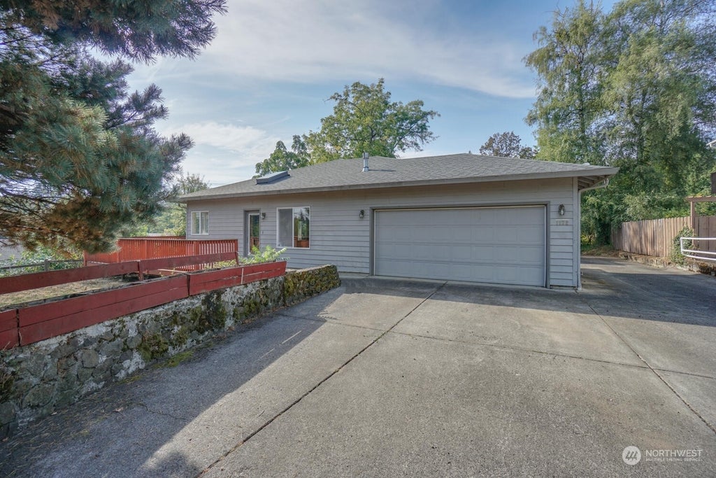 Come home to this matured lot surrounded by trees. Beautiful deck, two entrances, two car garage. This home feature a beautiful kitchen with lots of cabinets space, gas range, island and tile flooring. The utility room features a half bath and a utility sink. Primary bedroom has a walk-in closet, primary bathroom has double sinks and walk in shower. Den/bedroom has electric fireplace. Garage feature above floor shelving. House has sunroom