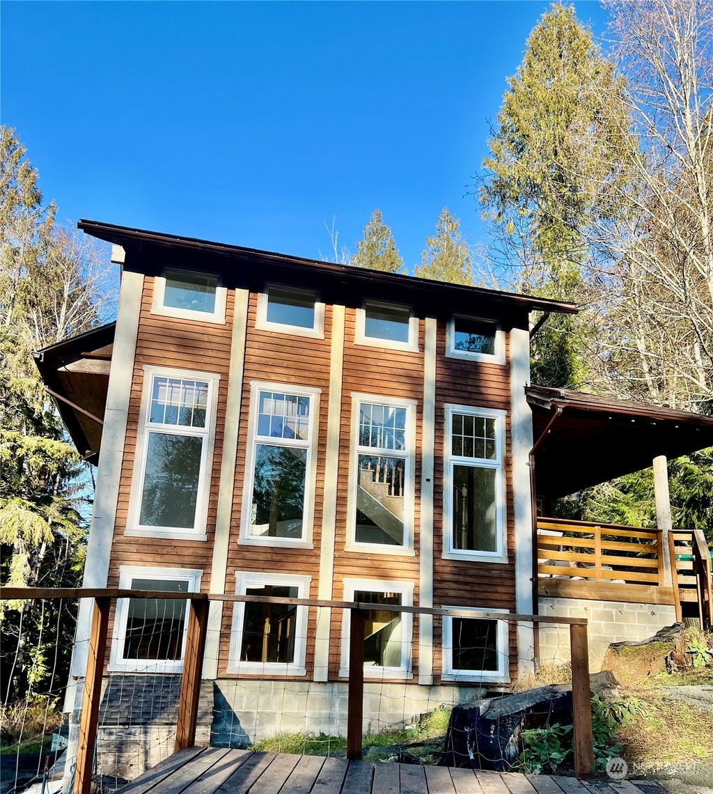 Stunning log-end home built in 2022 on its '07 foundations, as a three-bedroom three-bathroom with blueprints for a fourth bedroom Cordwood Masonry House. Located on a secluded road with access to Spencer Lake. Peacefully surrounded by trees also on lot: studio apartment 408sf, green house (currently used as storage), gazebo and a fountain. 15 mins to Shelton, 20 minutes to Belfair. Walking distance to Spencer Lake Bar and Grill and Spencer Lake grocery (gas station).