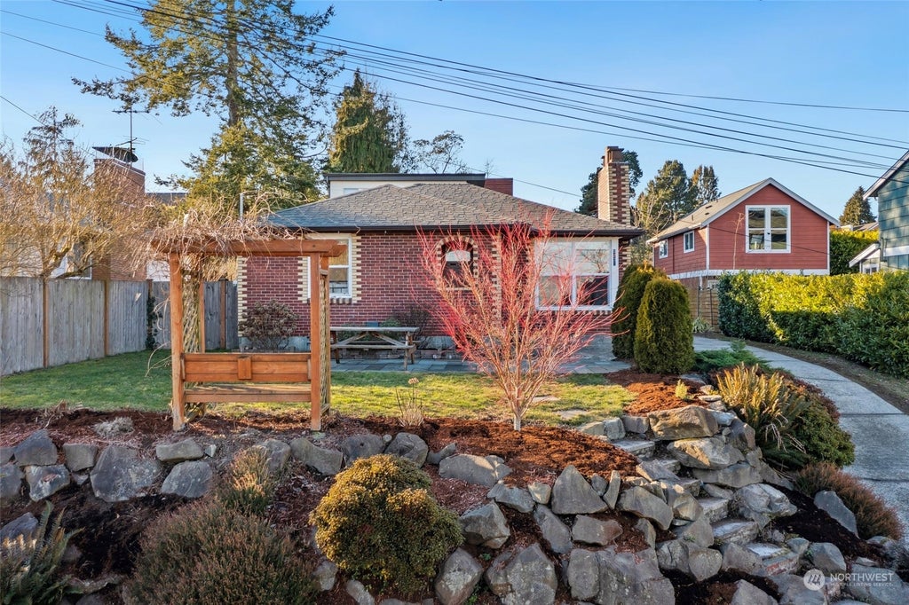 Perched high off the street in the heart of Crown Hill, you’ll find this beautiful brick mid-century home. Meticulously maintained & extensively remodeled, features include gleaming hardwood floors, crown molding & a statement fireplace w/ floor to ceiling stone + wood mantel. A remodeled kitchen w/ SS appliances, granite counters & breakfast bar opens to the living space w/ territorial views. Two bedrooms & an updated bath complete the main floor. Downstairs, find a spacious rec-room, ¾ bath, laundry & 3rd bedroom w/ WI closet. Large, private front yard patio. *New detached 2 car garage in back!* Enjoy all the amenities this location has to offer, w/ well-ranked schools, restaurants, cafes, shops, parks, & transit right outside your door.