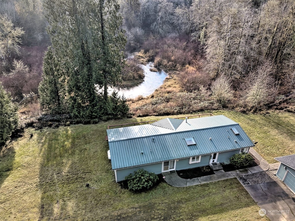 What an amazing place to get away! A beautiful 3 bedroom 2 bath home located on over 2.6 acres of privacy overlooking beautiful Mill Creek. The site has been cleared & mowed & faces due South for great solar exposure. The home was built in 1998 & is in very good condition. It features a large Primary Suite with doors to the full length deck overlooking the creek. The kitchen has tons of cabinetry, a sitdown breakfast bar & it opens to the big dining/great room area that also opens to Mill Creek & the hot tub on the deck. A cozy propane stove adds warmth to the living room. There are 2 more bedrooms on the far end with more doors to the deck. Mudroom too! The detached 2 car garage is fully finished & there is plenty of room to add a shop.