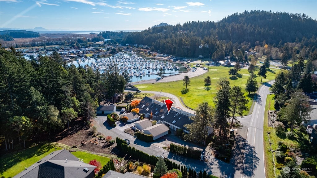Lovely sunny bright condo in excellent condition in Shelter Bay! One of 7 units - the only condo's in Shelter Bay. This sweet place offers living, dining and bedrooms facing south over the golf course. Great sunny deck. Two bedrooms = office, two and a half baths, updated kitchen, new paint and beautiful new wool carpeting. Gas free standing fireplace in living area. Single car garage and just enough garden area front and back to get you thumb green but low maintenance enough to lock the door and go.