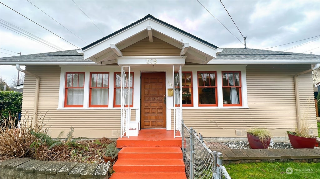 Don't miss this sweet 2 bdrm, 1 bath storybook cottage in the Sunnyland neighborhood. The home is bathed in natural light through original windows that have energy-efficient inserts. The original honey-hued fir floors, updated classic tile bathroom and a new west-facing deck overlooking a quaint yard and raised garden bed add to the charm. Updates include: dishwasher in 2025, exterior paint in 2024, roof in 2023 and the sewer line in 2003. New gas fireplace will be installed before closing by Innovations. Fantastic walkable/bikeable location near parks, restaurants and shops. Secure gear garage attached to the east side of the home has plenty of room for bikes, gear and gardening supplies. This is a great place to call home!
