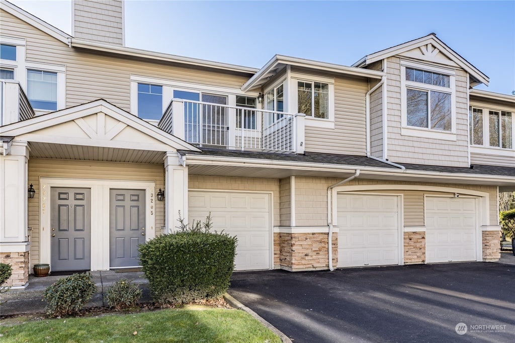 Welcome to The Lakes with charming walking trails & parks along tree-lined streets & beautiful water features. This Windward Cove unit offers a welcoming living area with high ceilings & cozy fireplace. Step onto your private balcony for morning coffee or container gardening. The spacious kitchen is bathed in natural light from large corner windows. Low-maintenance luxury vinyl plank flooring throughout upper level makes cleanup a breeze. Your roomy primary suite includes walk-in closet & direct access to full bath. Desirable attached 1-car garage has extra storage space in the back; ample nearby guest parking. Fantastic location close to freeways, shopping, transit, airport, Kent Station & more!