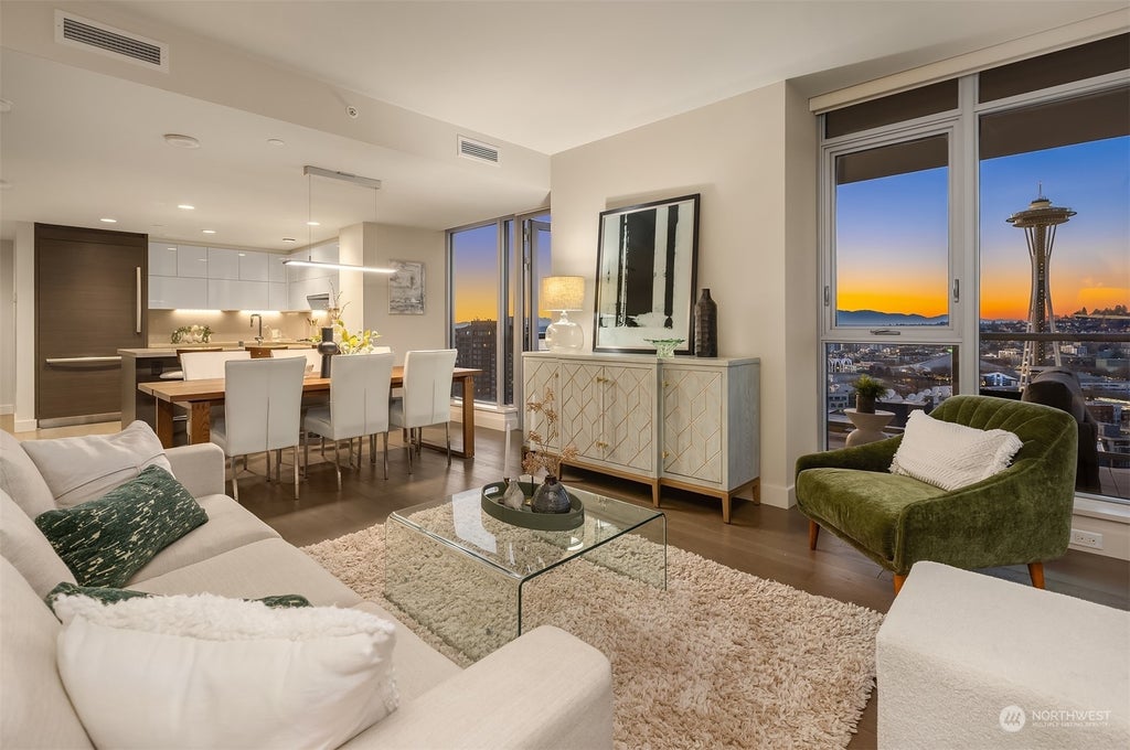 Stunning Corner Unit w/ Panoramic Views. On the market for the first time & located on the 25th floor of Insignia North tower, this light-filled, open-concept home features floor-to-ceiling windows that frame sweeping views of the Space Needle, Puget Sound, Lake Union, and the Cascade Mountains. Designed for privacy w/ bedrooms on opposite sides of living area. Private 130 SF deck is the perfect spot to unwind while taking in Seattle’s iconic skyline. Lutron power shades, custom closets & new interior paint. 2 parking spots & 1 storage. Resort-style amenities - 24-hr concierge, theater, lap pool/spa, 2-story fitness center & two multi-use areas w/rooftop decks, game room, clubroom, & dog run. One of the city’s most sought-after high-rises!