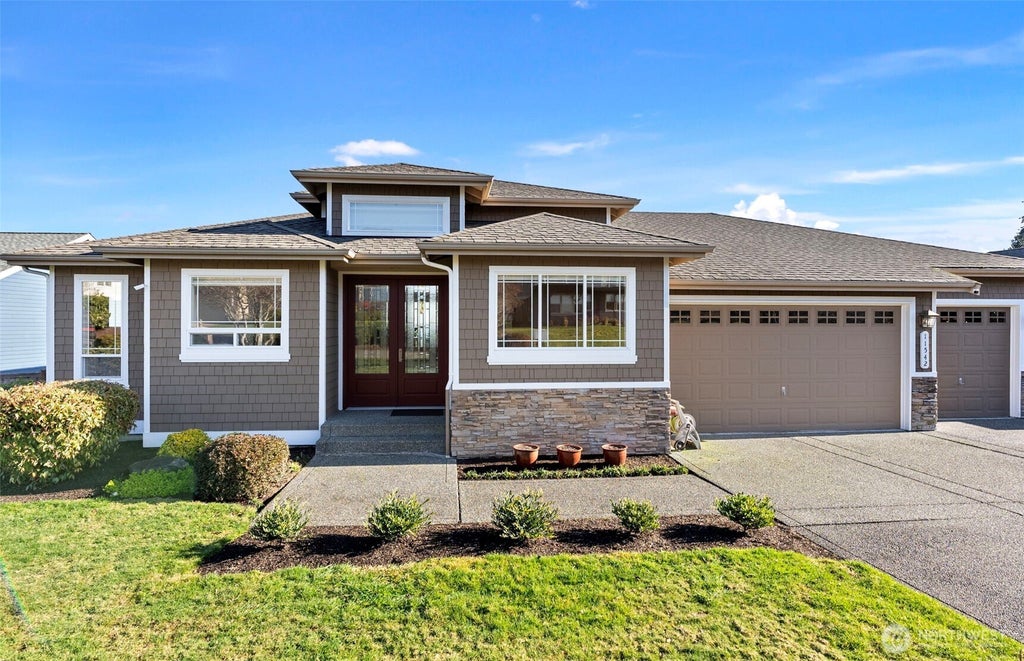 Beautiful, bright, and spacious! Fall in love with this well-maintained home featuring breathtaking Puget Sound and Cascade Mountain views. Move-in ready with gorgeous finishes throughout. The primary suite boasts stunning water views, an ensuite with fully updated walk-in shower, cabinets, granite, heated floors & more. Entertain on the brand-new deck with frameless glass railing. The lower level offers a private retreat with 3 bedrooms, a full bath, and a cozy living area, all with incredible views. A meticulously manicured backyard oasis, blending elegance w/natural beauty. A true retreat. Whole house generator plus many home upgrades. Minutes to the ferry and amenities. This spectacular home is stunning inside & out!