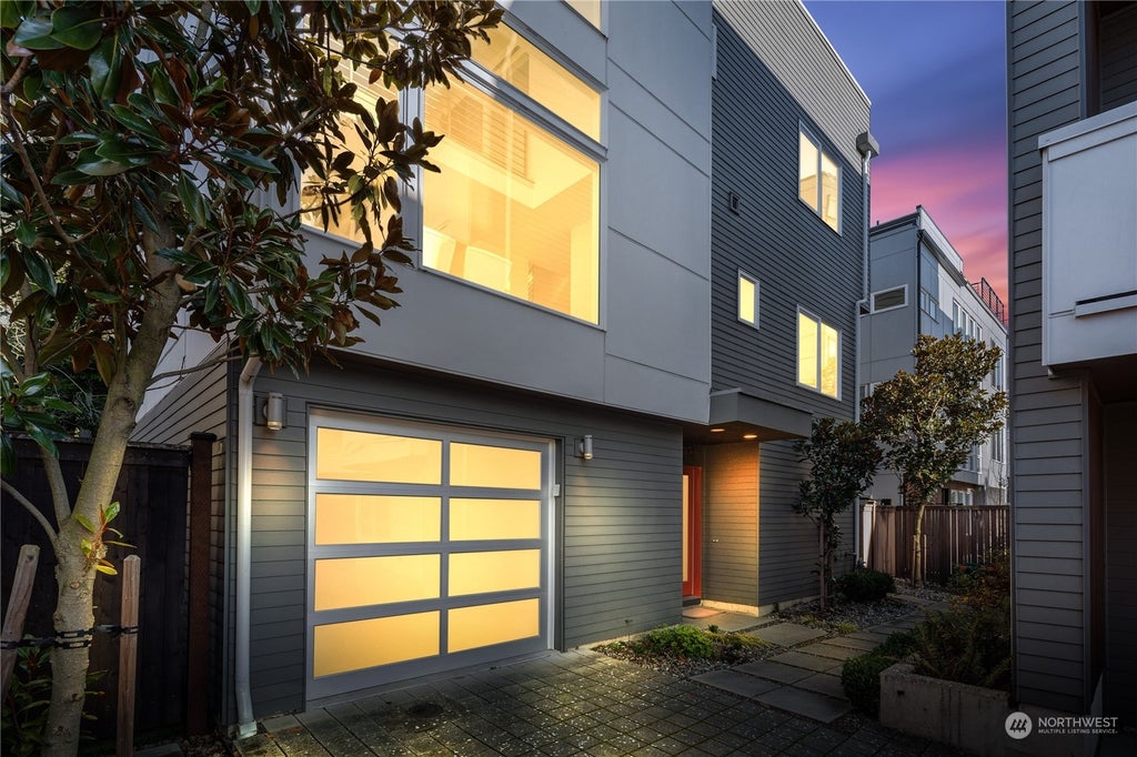 Discover this sleek stand-alone home in the heart of Ballard. Designed for modern living, w/ an open layout, soaring two-story windows, hardwood floors & 3 bedrooms + loft/4th bedroom. The gourmet kitchen showcases quartz countertops, eating space, S/S appliances, & a Bertazzoni gas range. Retreat to a spacious primary bedroom with a huge walk-in closet and spa-like ensuite w/ radiant floor heat, rain shower & soaking tub. Enjoy breathtaking views from the 650+ sqft rooftop deck, great for relaxing or entertaining. Appreciate added convenience of a fully-fenced yard, low-maintenance turf & attached garage. Just steps from Ballard’s best restaurants, shops, & parks, this home offers style, comfort, & a prime location! Walkscore 81. No HOA!