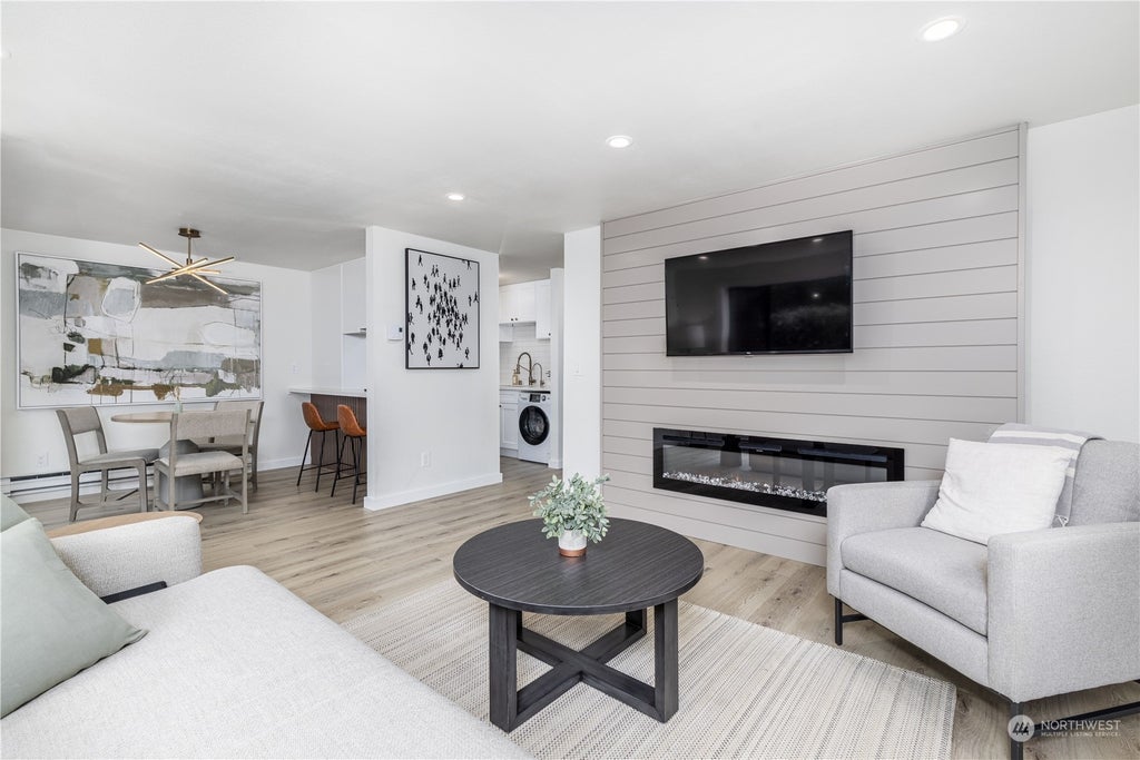 Be the first to live in this stunningly renovated 768 sqft ground floor condo in the heart of the cute Old Town Burien! Every inch has been refreshed—new floors, fresh paint, all-new lighting, updated kitchen w/ sleek stainless steel appliances including a washer/dryer combo. Fully updated bath. The open-concept living space is anchored by a gorgeous fireplace, while HUGE south-facing windows flood the home with light. A slider off the dining room leads to a big patio—perfect for BBQs or soaking up the sun! The spacious bedroom boasts an oversized closet, plus there’s tons of storage, even an extra storage closet! Includes off-street parking spot. Just steps from cafés, brewery, yoga, & more—this is urban living at its best!