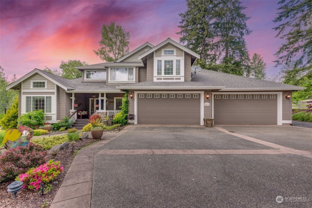 First time on the market! This beautifully maintained Echo Lake home sits on 1.38 acres & boasts a grand entry with vaulted ceilings & natural light. The main floor features an open-concept kitchen with eat-in dining, living room with a cozy fireplace, sitting room, formal dining & private office. The primary bedroom has a walk-in closet, 5-piece bath, & French doors that lead to a deck overlooking the garden. Upstairs has 3 additional bedrooms, a full bath, media loft & huge bonus room. Outside amenities include a giant covered deck, 1500 SF patio, gazebo, gardening shed, storage shed, kids playset, horseshoe pit, mature landscaping, auto irrigation, & a pond with water feature. Huge 4 car garage with shop space. RV & boat parking. No HOA!