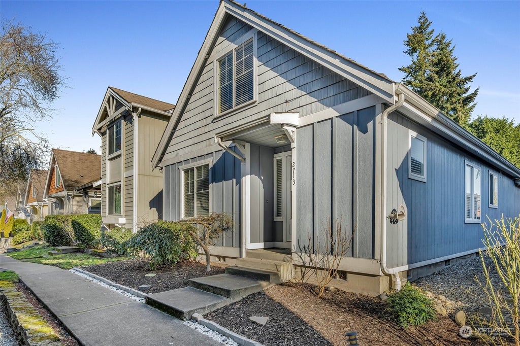 This 3 bedroom, 2 and a half bath two story home is private and secluded at the back of the neighborhood. Home features open concept floorplan, living room with gas fireplace, primary suite with full bath and walk in closet on the main level, kitchen with granite slab counters and stainless steel appliances, dining room, utility room with washer and dryer included, upper level with full bath and two bedrooms. Close to South Hill Mall, Bradley Park and access to 512