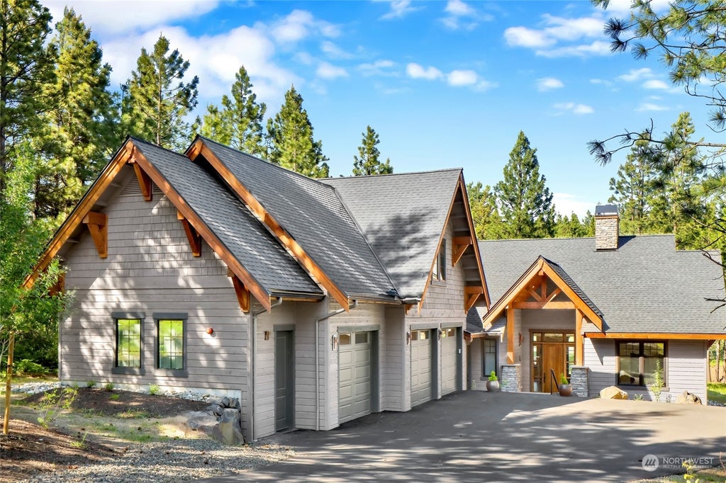 Nestled on a quiet cul-de-sac, just a short distance from the central core and upcoming village, this incredible custom Eide-built Northwest modern home, located off the 9th hole of Prospector Golf Course, combines elegance, functionality, and an unbeatable location. Built just three years ago, the home features four bedrooms including a built-in four bed bunkroom, bonus rec. room, four bathrooms, and a spacious three-car garage, with one stall converted into a versatile recreation/game room—perfect for entertaining or additional parking. This contemporary design showcases thoughtful details, exceptional craftsmanship, and is an entertainers dream. This home represents the best of Suncadia's serene and picturesque settings.