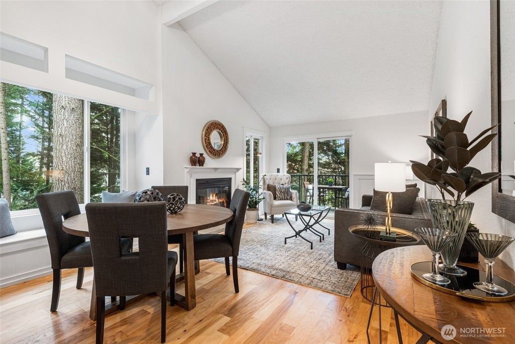 This beautifully updated top-floor condo offers the perfect blend of city convenience and a peaceful wooded retreat, just across from Microsoft’s campus. Thoughtfully renovated with modern finishes, soaring vaulted ceilings, an open-concept layout, plus a cozy fireplace. The spacious primary includes a private en-suite bath, while two additional bedrooms provide flexibility for guests, home office, or creative space. The updated kitchen flows seamlessly into the living area, while the bathrooms have been completely redesigned with high-end finishes. Flooded with natural light showcasing the serene, tree-lined views. Private deck to take in the beauty of the wooded surroundings. Storage, deeded parking, sparkling pool and clubhouse.