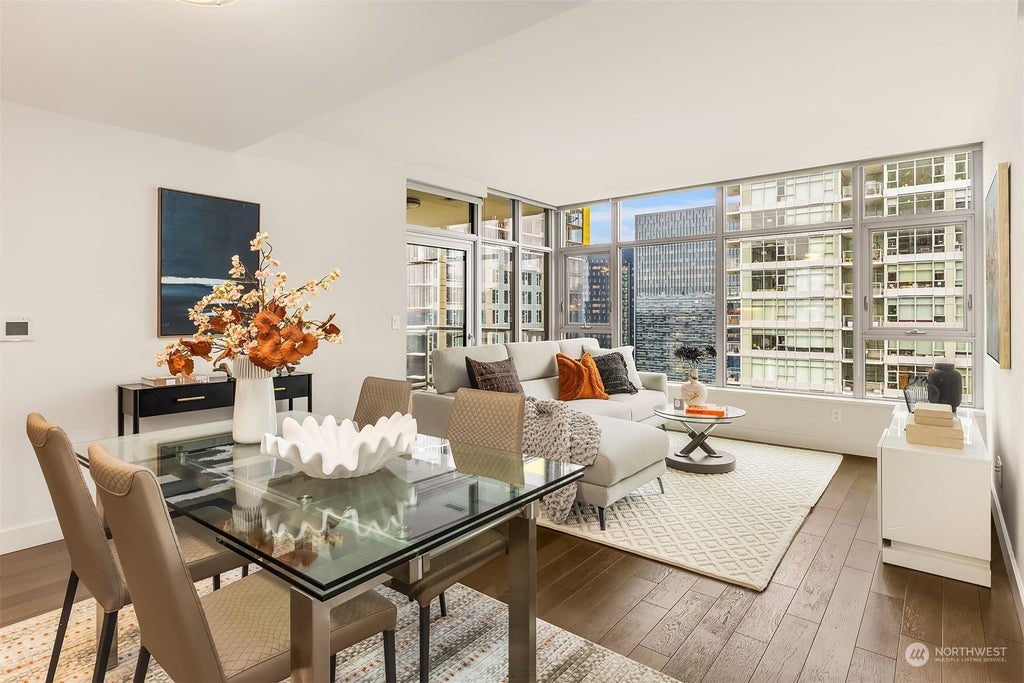 Insignia...the most coveted building in Seattle. Perched high on the 35th floor with spectacular southwest facing city & Sound views, an open floor-plan & a large covered entertainment deck. Bright & modern unit with sleek finishes, quality materials & high-end appliances. Bedrooms on opposite sides for privacy. Unit comes with 2 parking spots + EV charging station and a storage unit. Resort-like amenities include a 2-level gym with yoga & Pilates studios, indoor swimming pool, hot tub, steam room, dry sauna, open-air resident park, movie theater, multiple roof-top Sky lounges with the best views of the city & a helpful 24-hr concierge. Located just a few blocks from Amazon HQ, Whole Foods, the Space Needle & many fabulous restaurants.