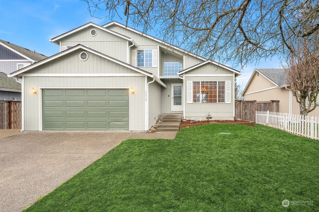 Discover your peaceful retreat in Yelm with breathtaking mountain views! This beautifully updated home features a spacious kitchen with eating space, vaulted ceilings, skylights, and laminate flooring. The lower level offers a versatile second living area, perfect for a playroom or additional space. The garage is a standout with a workbench, den, heat, AC, and built-ins for a home office. Enjoy a fenced dog run or chicken area. Centrally located just a mile from top dining, shopping, and entertainment, with easy 30-minute access to JBLM. Move-in ready with quality craftsmanship—don’t miss out!