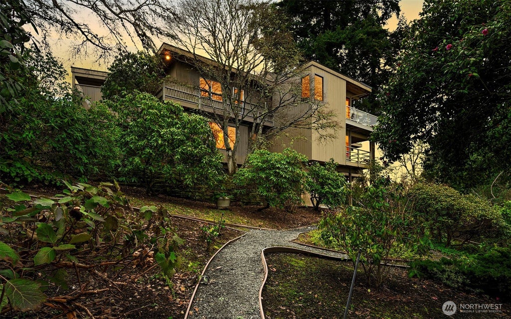 Step into this striking Mid-Century Modern home, where iconic architecture meets thoughtful updates for contemporary living, just three blocks from the vibrant downtown shops and eateries. Expansive windows frame breathtaking Sound and Whidbey Island views, flooding the space with natural light that highlights the home’s stunning design. Vaulted beamed ceilings, clerestory windows, built-ins, original pegged hardwood, and slate floors reflect the era’s craftsmanship and attention to detail. Nestled in a private, treehouse-like setting, lush garden vignettes create inviting outdoor spaces for entertaining or quiet retreat. A rare and special home that offers both classic style and contemporary comfort, all in an unbeatable location!