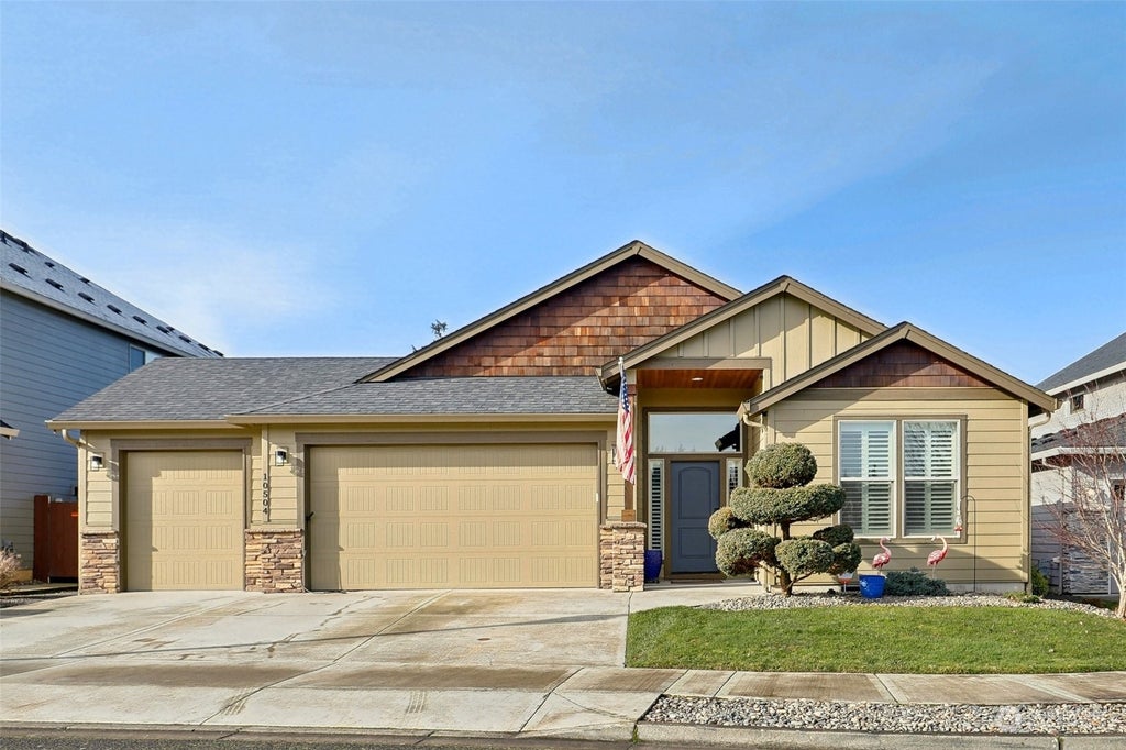 Discover this stunning 3-bedroom, 2-bathroom home with a spacious 3-car garage and custom upgrades throughout.The open-concept layout features engineered hardwood flooring, elegant shutter blinds, and a stylish granite-countered kitchen with a walk-in pantry.The primary suite boasts tray ceiling lighting, a spa-like ensuite with a soaking tub, walk-in shower, double sinks, and a generous walk-in closet.Step outside to a private backyard oasis, complete with a covered patio, ceiling fan and lighting, and two sheds for ample outdoor storage.Enjoy modern conveniences like an EV charger and low-maintenance landscaping, making this home both practical and luxurious.