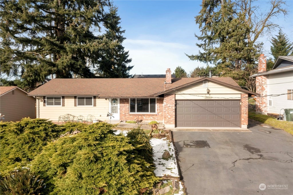 This charming rambler offers comfortable living with 3 bedrooms and 2 bathrooms, plus an attached 2-car garage. The cozy living room features a wood-burning fireplace, perfect for relaxing evenings. The updated kitchen and bonus room with a freestanding wood stove add to the home's appeal. The main bedroom boasts an updated ensuite bath for added convenience. Outside, enjoy a fully fenced backyard with a covered shed for storage or outdoor hobbies. With plenty of parking for an RV, boat, or guests and no HOA, this home is a great find! Located just a short walk from ball fields, playgrounds, and trails, and under 3 miles to Lake Meridian. Plus, it's just minutes from Hwy 516 or 18 for easy commuting and shopping!