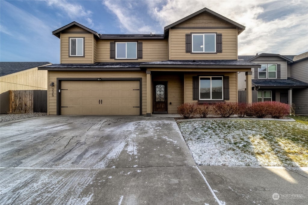 Built in 2015, this well-maintained home is move-in ready with brand-new carpet and fresh interior paint. The main level features durable laminate hardwood flooring, an inviting open floor plan, and a versatile office/den. The kitchen seamlessly flows into the dining and living areas, creating a bright, welcoming space. Upstairs, the spacious primary suite offers a walk-in closet and an en-suite with a soaking tub and shower. Outside, the fully fenced backyard features a fire pit and a dog run. A two-car garage provides ample storage. This home blends comfort, style, and functionality in a great location!