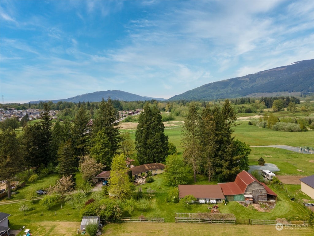 Nestled in a picturesque setting, this sprawling rambler offers breathtaking views of the Cascades & serene territorial landscapes. The main living area features a vaulted wooden ceiling, creating a warm & inviting ambiance, complemented by laminate flooring throughout. Cozy up by one of the two fireplaces or gather in the spacious kitchen with generous storage, and a bright eat-in area. Outside, the property truly shines with a park-like setting, complete with fruit trees, gazebo, garden space, and a large yard—perfect for relaxation & outdoor entertaining. A barn & outbuilding provide endless possibilities for hobbies, storage, or animals. Enjoy the best of both worlds with a full country feel while being conveniently close to town.