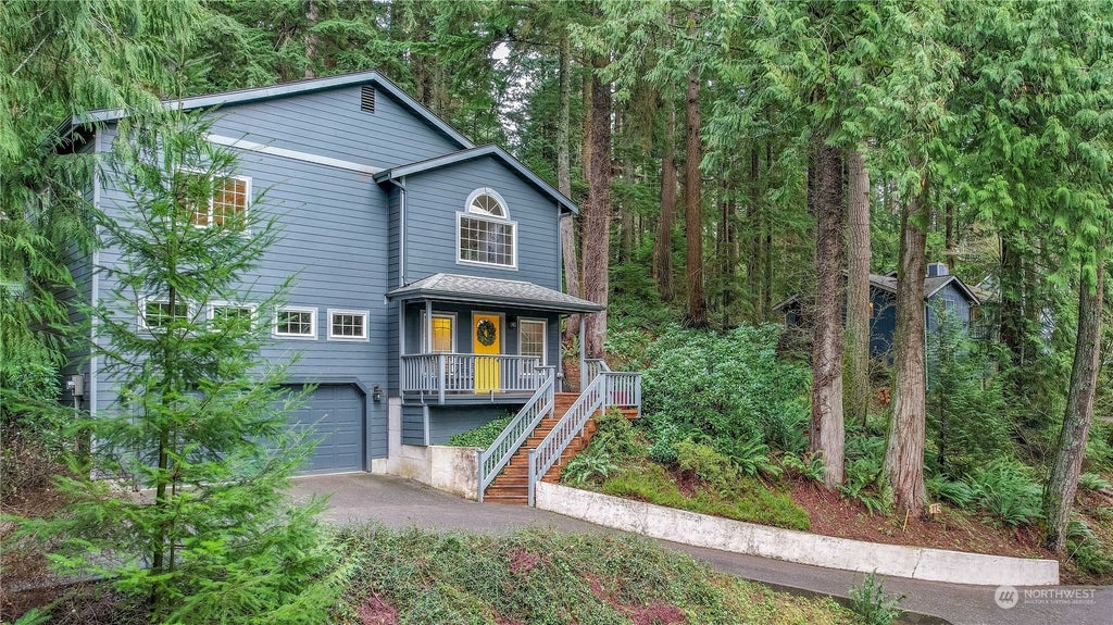 This is your chance to own a uniquely beautiful, well-cared-for home that abuts green space! This 3BD, 2BA property offers a lovely primary bedroom w/ensuite bath & private door to your back deck for a true retreat feel. A light-filled kitchen w/large garden window and open-concept dining, complete w/skylights & fireplace, make your top floor perfect for relaxing & hosting. The main level entrance welcomes you through the charming covered front porch & double height tiled foyer, and into the spacious family rm/entertaining rm. Large separate storage rm. Prime location between Gate 9 & 13 + access to all SV amenities such as hiking & biking trails, swimming pool, gym, dog park, library, 18-hole golf course & more!